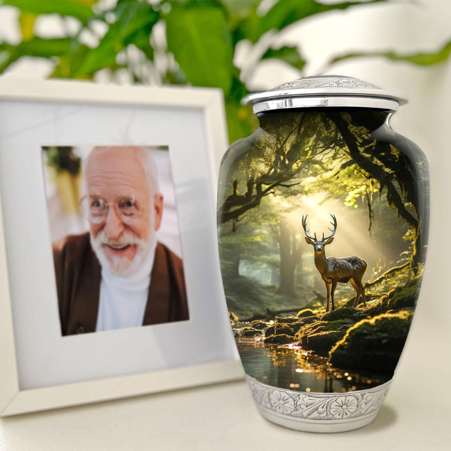 Deer Forest Urn for Human Ashes | Large Handcrafted Funeral Memorial | Decorative Cremation Urn for Women and Men