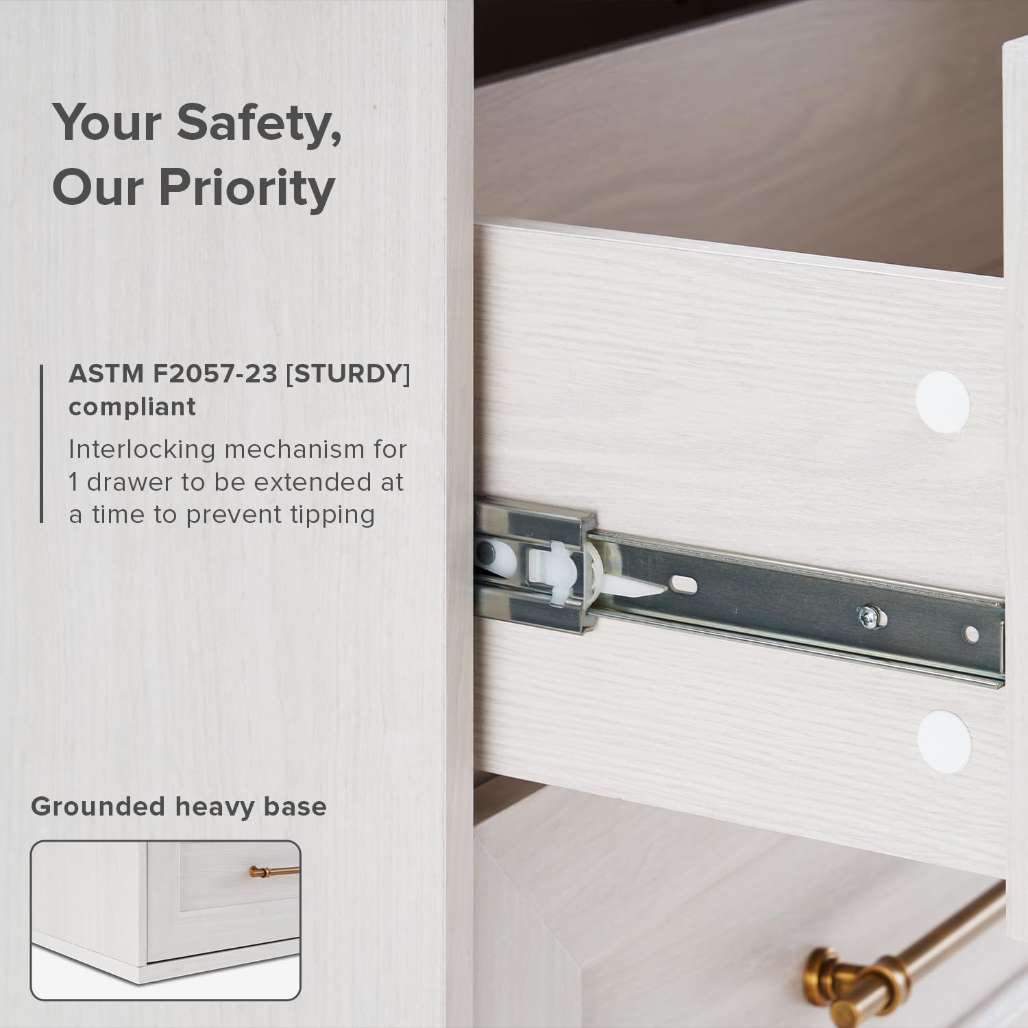 As part of compliance update in USA, - ASTM F2057-23 (STURDY), our drawer has an interlocking mechanism which allows only one drawer to open at a time to prevent the dresser from tipping.